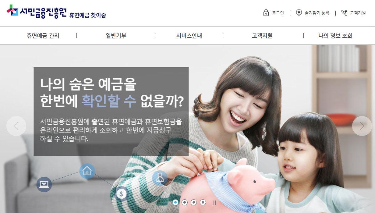 서민금융진흥원 출연 휴면 예ㆍ보험금 조회 및 지급신청 등