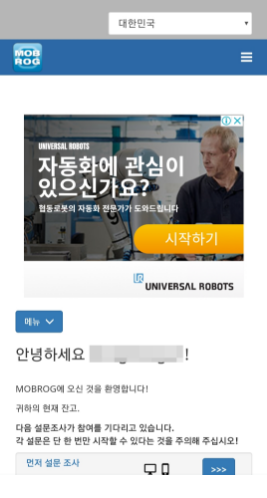 달러를 벌수 있다는 것에 눈치를 채신 분들도 있을텐데요, MOBROG(몹로그)는 설문조사 회사가 해외입니다. 어플을 이용할때는 한글로 보여지니 걱정 안하셔도 됩니다.