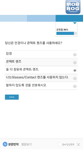 번역이 된거라 약간 문장이 이상하게 보여지기도 하는데 설문을 하는데는 큰 지장은 없어요. 빨리 진행하기 위해서 많이 생각할것 없이 바로바로 다음으로 넘어가는게 시간을 아낄수 있어요.^^
